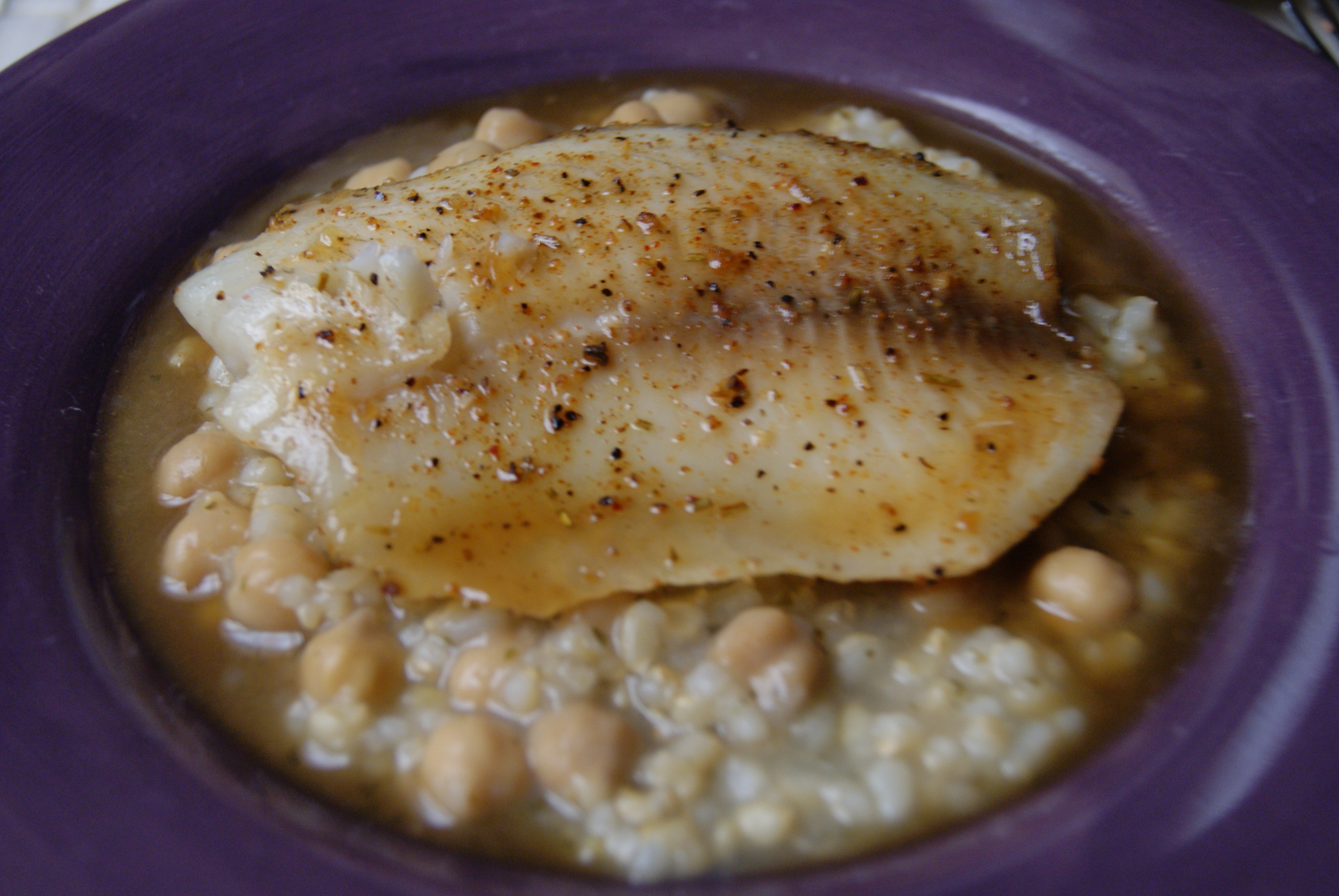 Eventually my brain settled enough for me to write. I had so many thoughts about what I wanted to say and how I should say it and, and, and. As tired as I am, I would be surprised if I don’t look back on this tomorrow and either A. not remember writing it, or B. find an astronomical number of typos. But what I do know is this: I said what I was supposed to. Coming from a person who has to KNOW every detail of everything to function, let me rephrase that, a former need-to-know-it-all, that’s quite a feat. Here is my last food pic for the day. Because I realized I needed to eat, even though it was after 10pm, I had to just throw something together. So I did. Broiled Tilapia nestled on a bed of Brown Rice and Chick Peas. I poured the last of my Citrus Ginger Sauce, from the lunch I had earlier, over the fish. Surprisingly, it was very good. I probably couldn’t re-create if I tried. Some of my best dishes have been Happy Accidents.