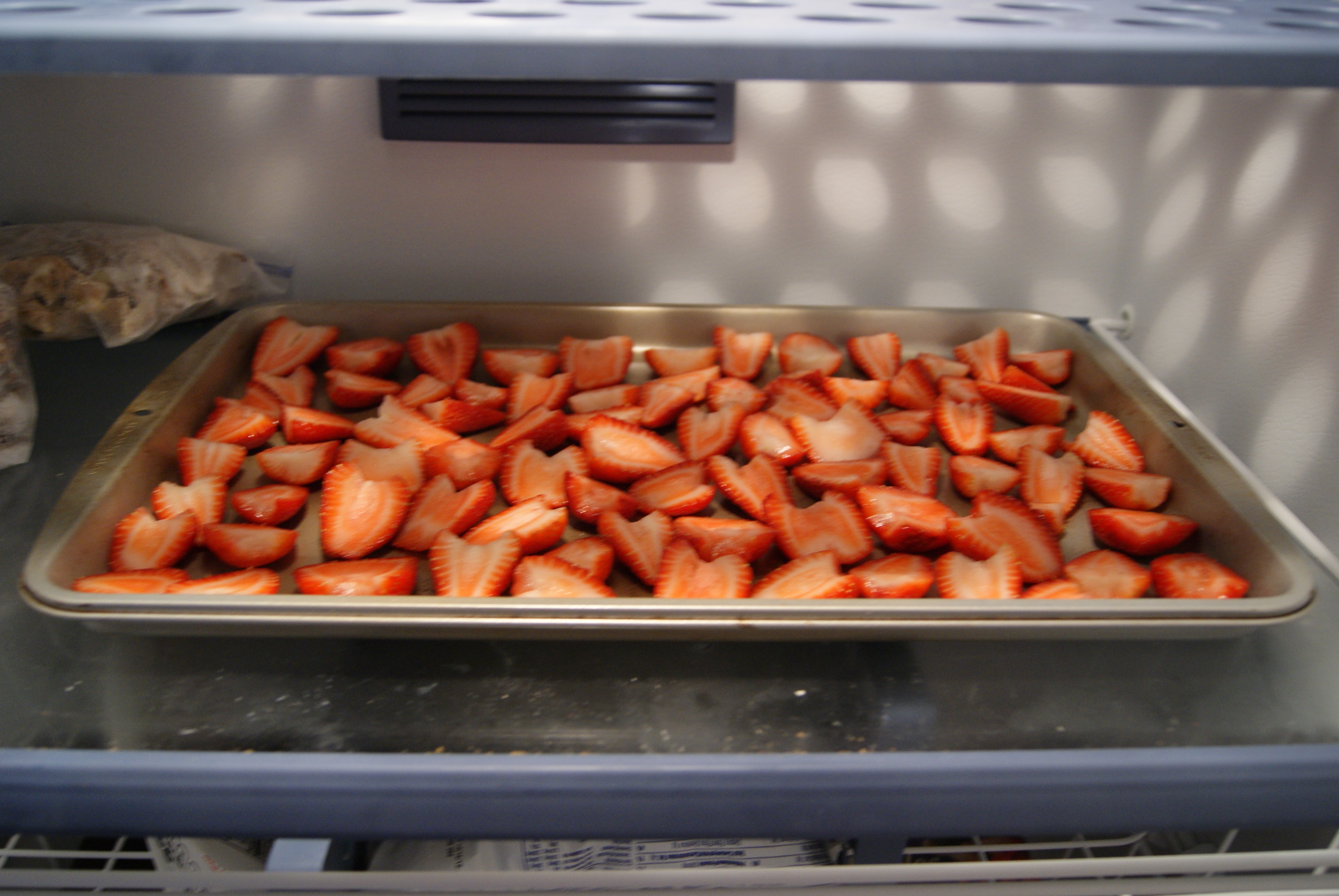 I realized that I was wasting a ridiculous number of strawberries by buying large quantities, that I couldn’t quickly consume, just because it was on sale. Duh! Freeze them. So now when I find a great deal on my smoothie staple, I’m ready. So much easier than prepping them one smoothie at a time.